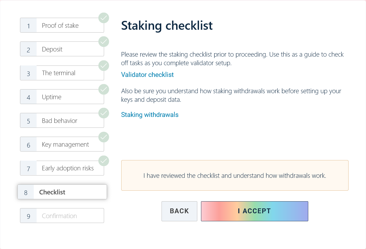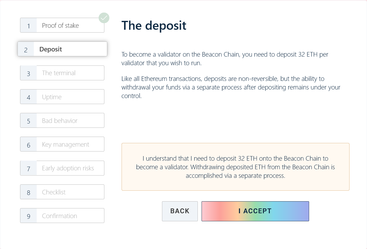Once you have your validator machine setup running both an Execution Layer client and Consensus Layer client you are ready to start the deposit process.