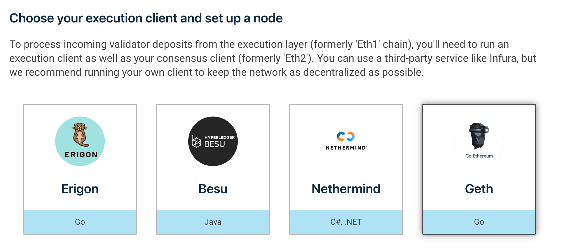 Choose execution client