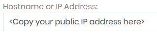 Copy your IP address from this website and paste it in the "Hostname or IP Address" field located at the top of the "Network Settings" page. This will already be populated with your private IP address, you must overwrite it with your public one.