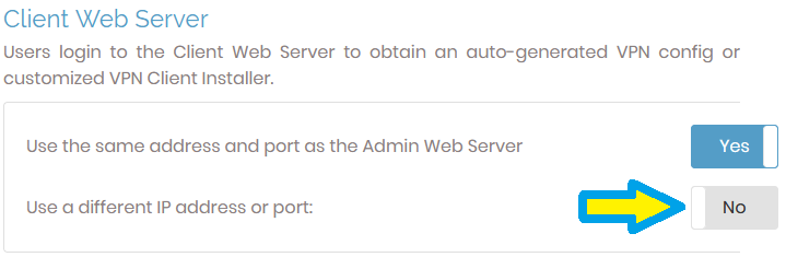 On the same page "Network Settings", please scroll down to the bottom and find "Client Web Server" and toggle the "Use a different IP address or port" setting.
