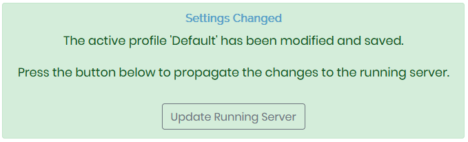 From here, please click "Save Settings" and then "Update Running Server"